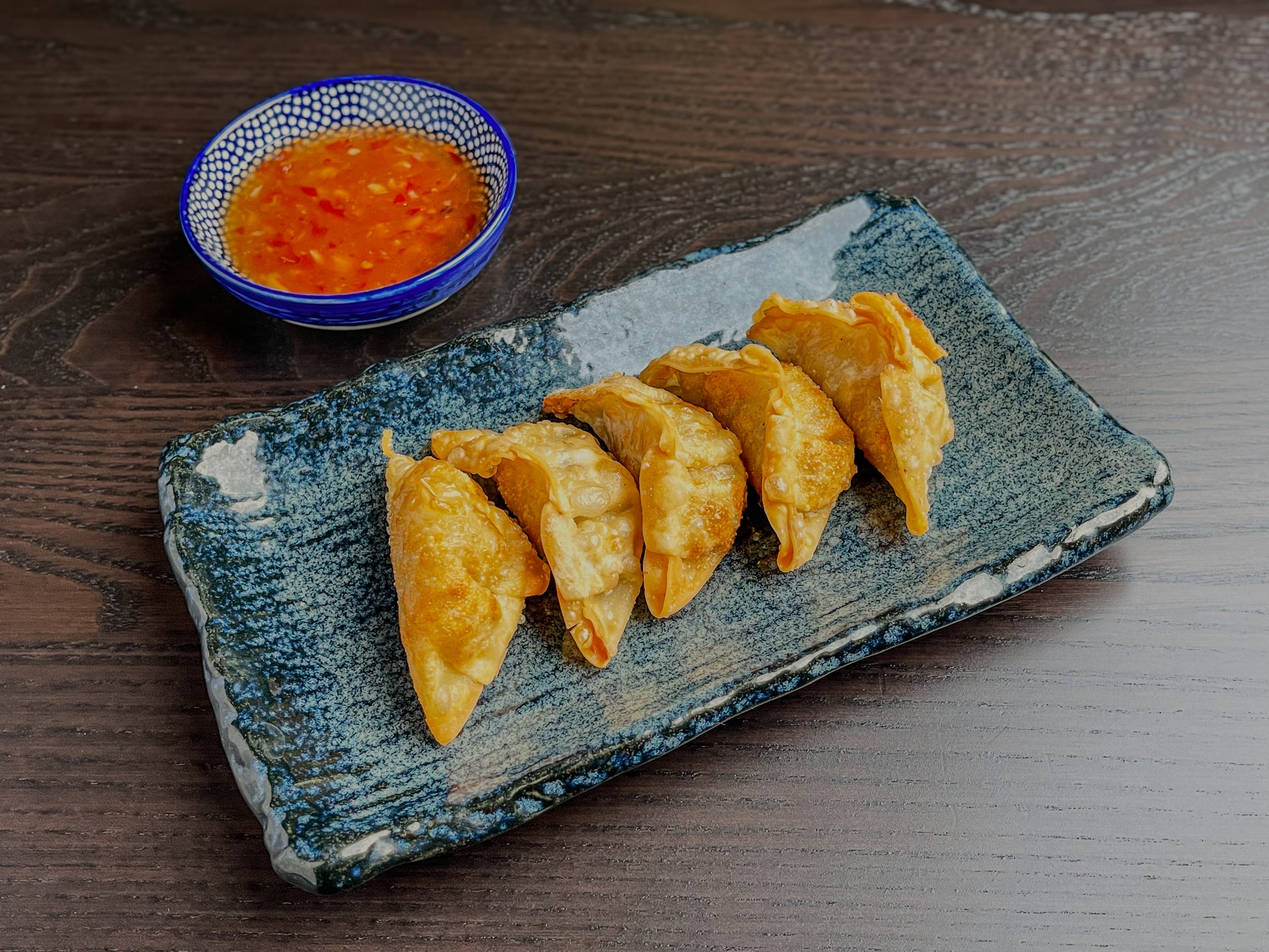 Koreanische Dumplings, die du unbedingt probieren solltest! Unten knuspring, oben weich und innen gefüllt mit deinem Liebling. Vegetarisch, Kimchi oder Hänchen. 4 Stück werden dir geliefert.