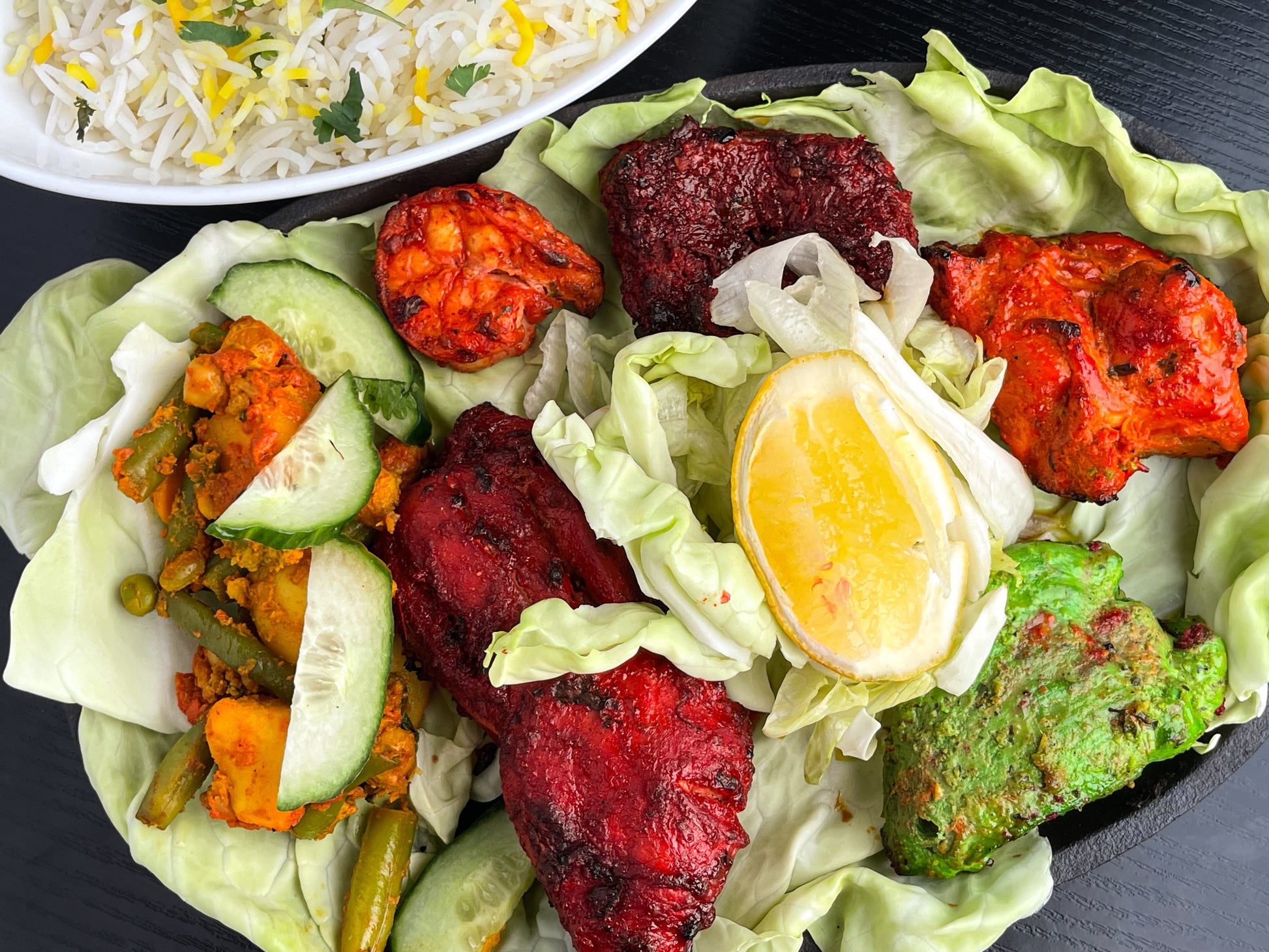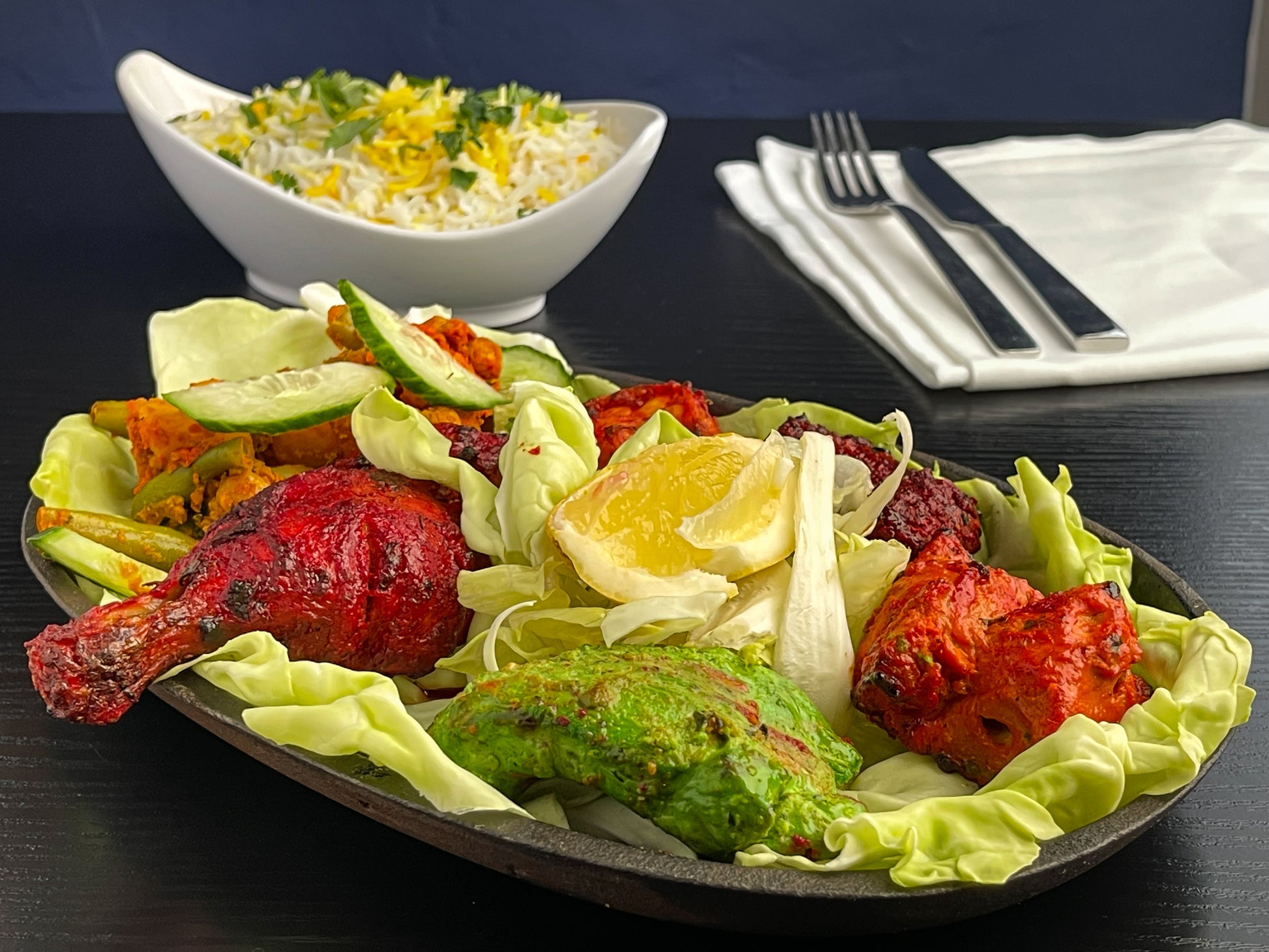 Etwas von allen Tandoori Köstlichkeiten - Chicken, Lamm, Garnelen gegrillt im Holzkohle-Lehmofen aus Indien